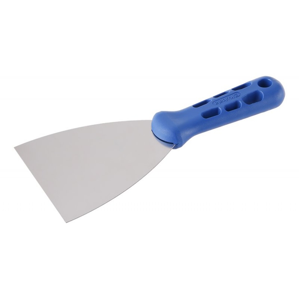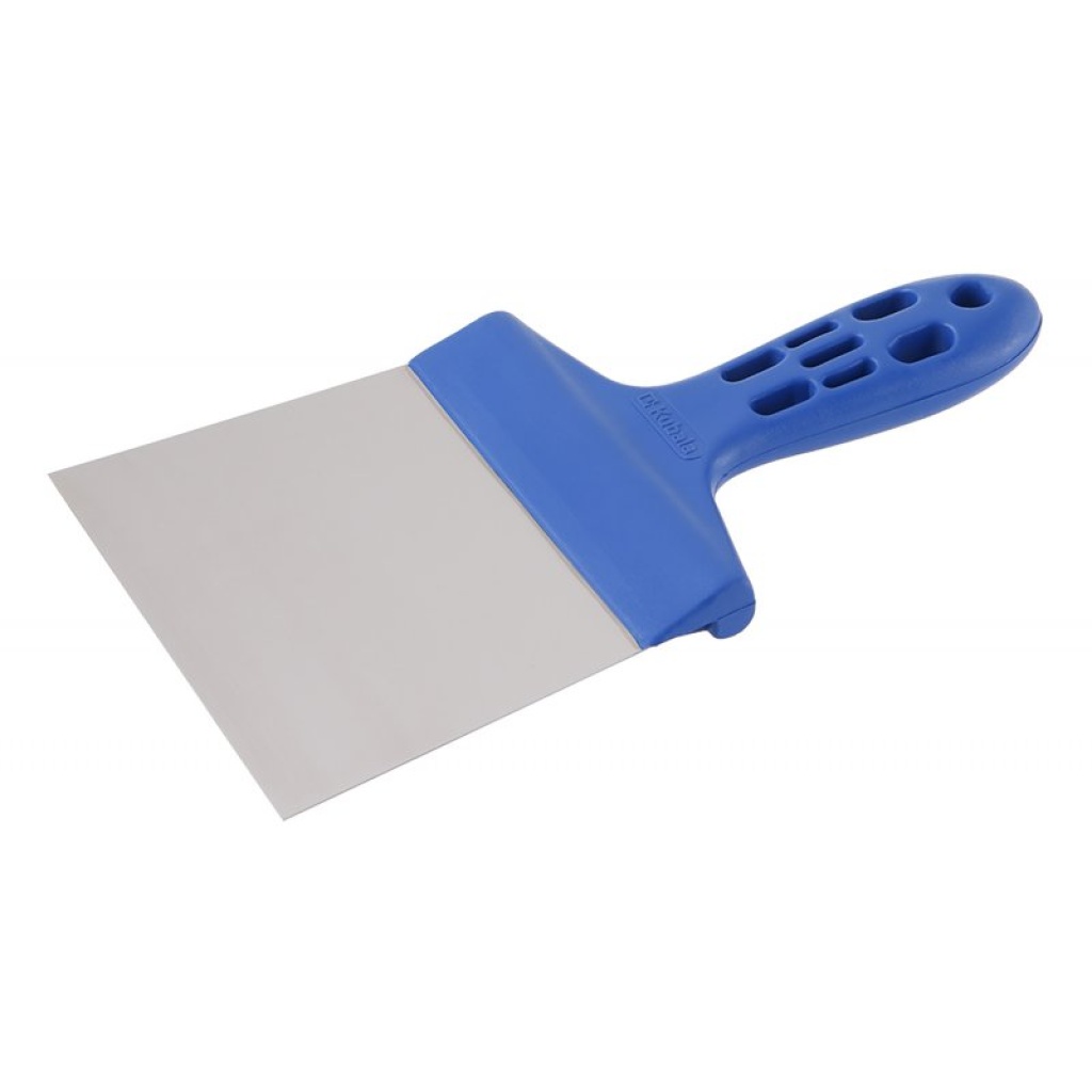 • Rustfrit stål fleksibelt blad med afrundede hjørner til jævn påføring og udglatning af spartelmasse.