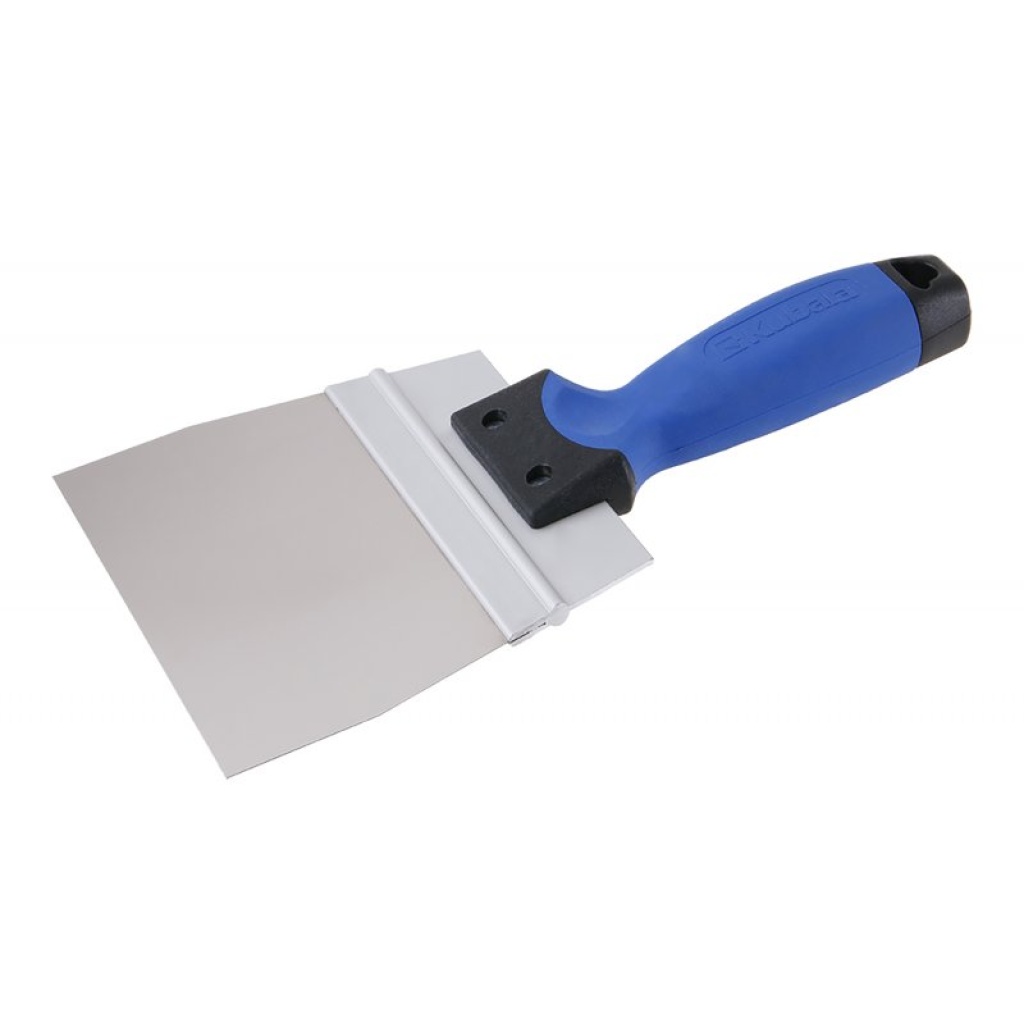 • Rustfrit stål fleksibelt blad med afrundede hjørner til jævn påføring og udglatning af spartelmasse.