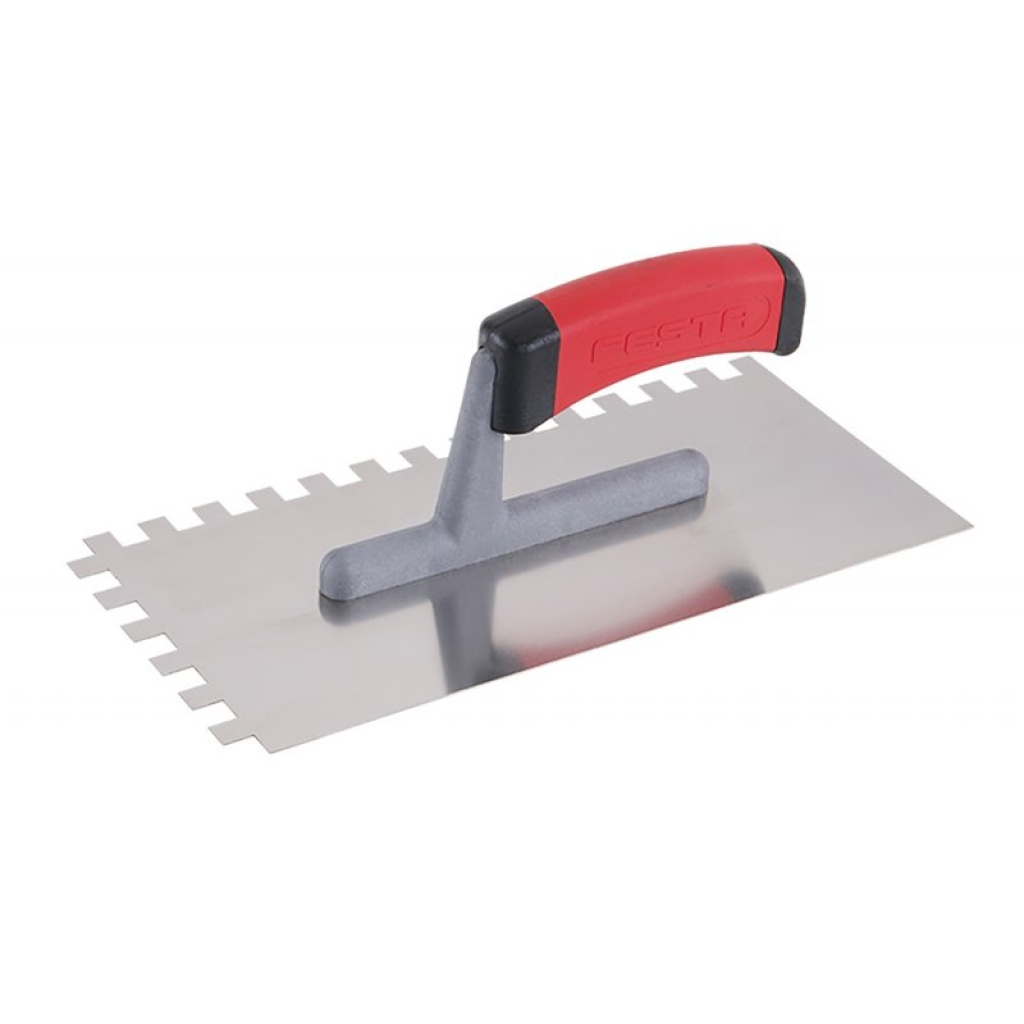 Det bruges hovedsageligt til påføring af klæbemidler under flisebelægning og brolægning, samt til påføring af afretningslag, stuk, puds, fugemasse og andre byggematerialer.