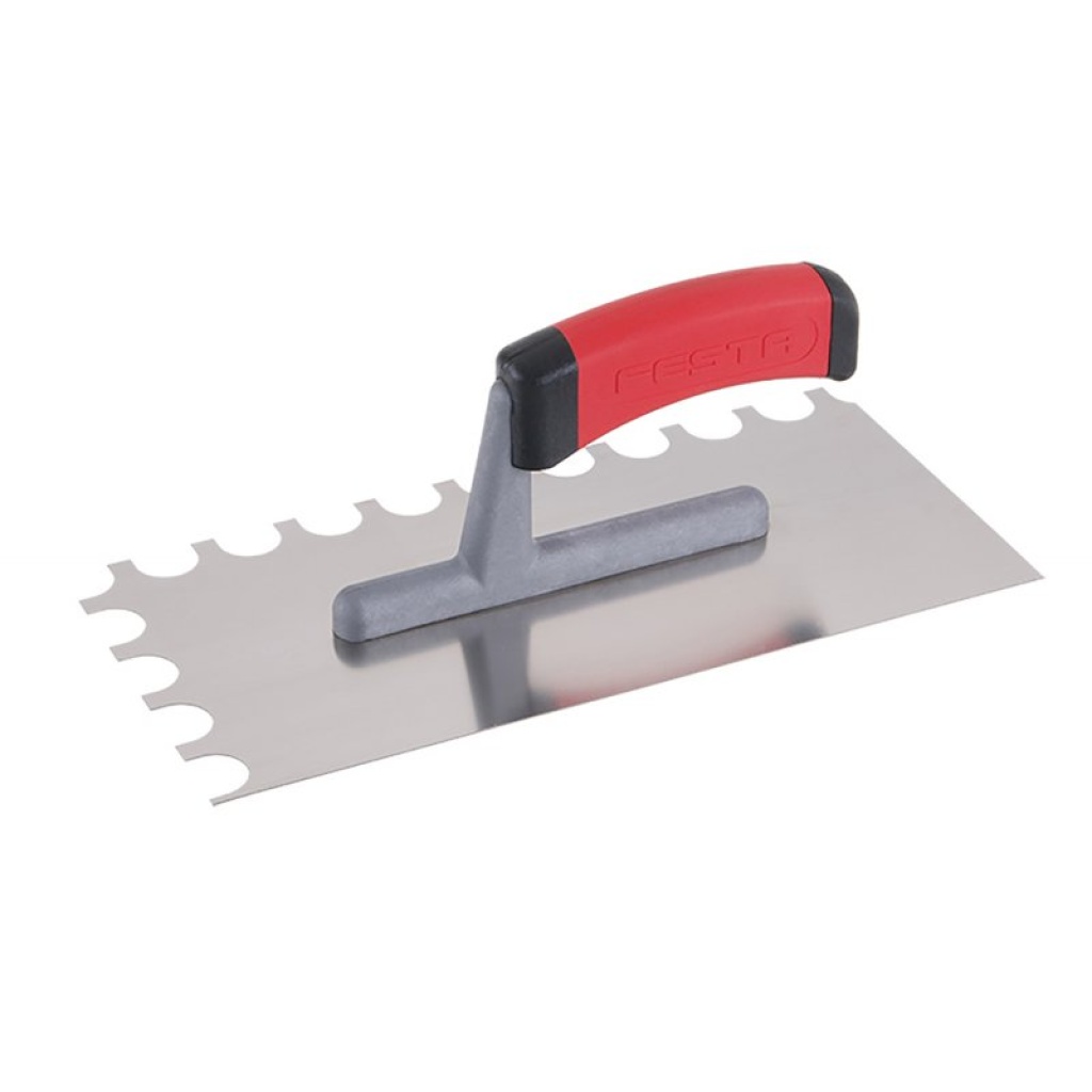 Det bruges hovedsageligt til påføring af klæbemidler under flisebelægning og brolægning, samt til påføring af afretningslag, stuk, puds, fugemasse og andre byggematerialer.
