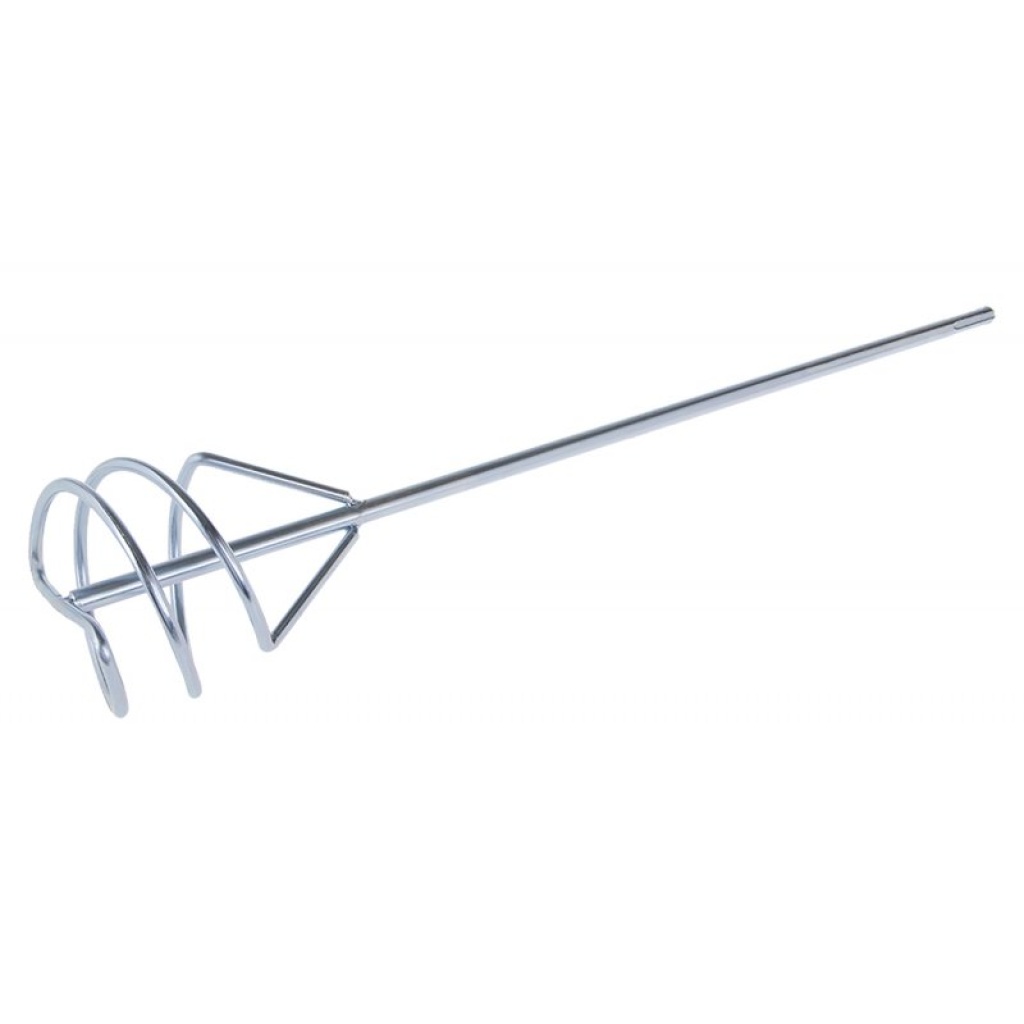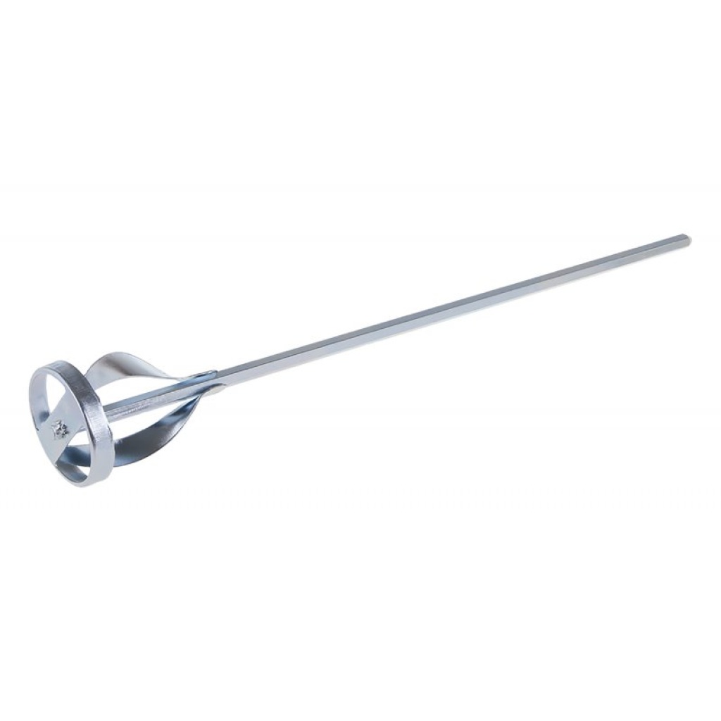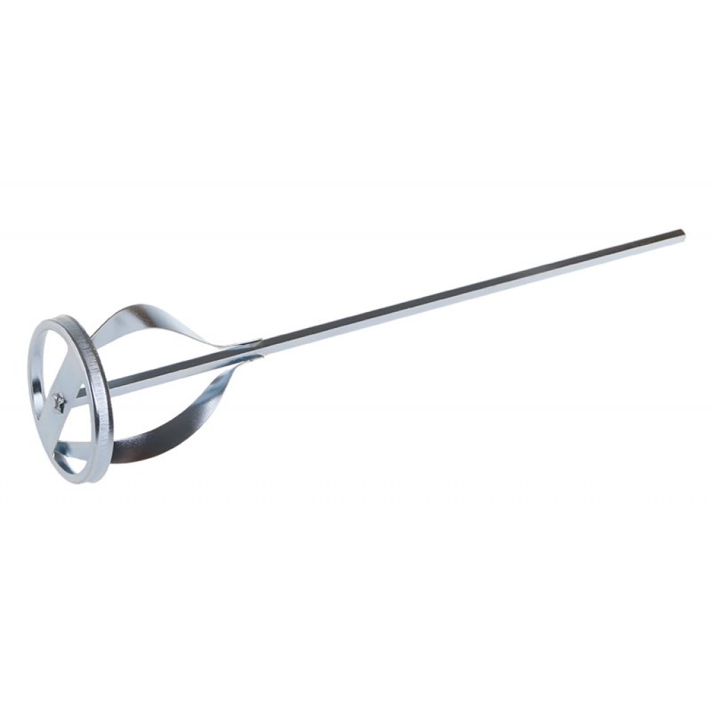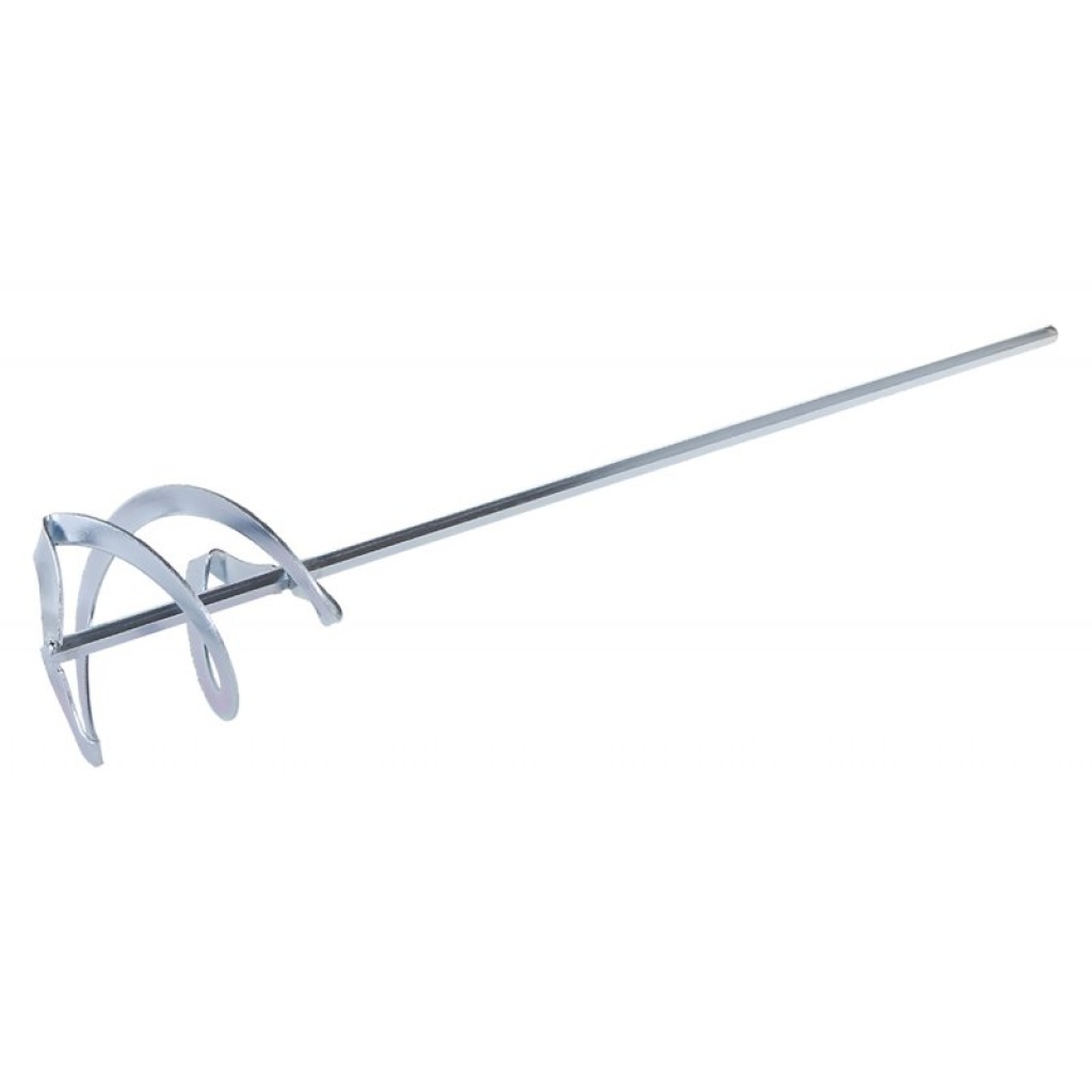 Omrører – spiral (kost), galvaniseret, størrelse: 100 x 500 mm, anvendelse: spiralkost anvendes til højviskose og klæbrige materialer, såsom byggelim og fugemasse, puds, gulvafretninger mv., materialet flyder fra bunden til overfladen.
