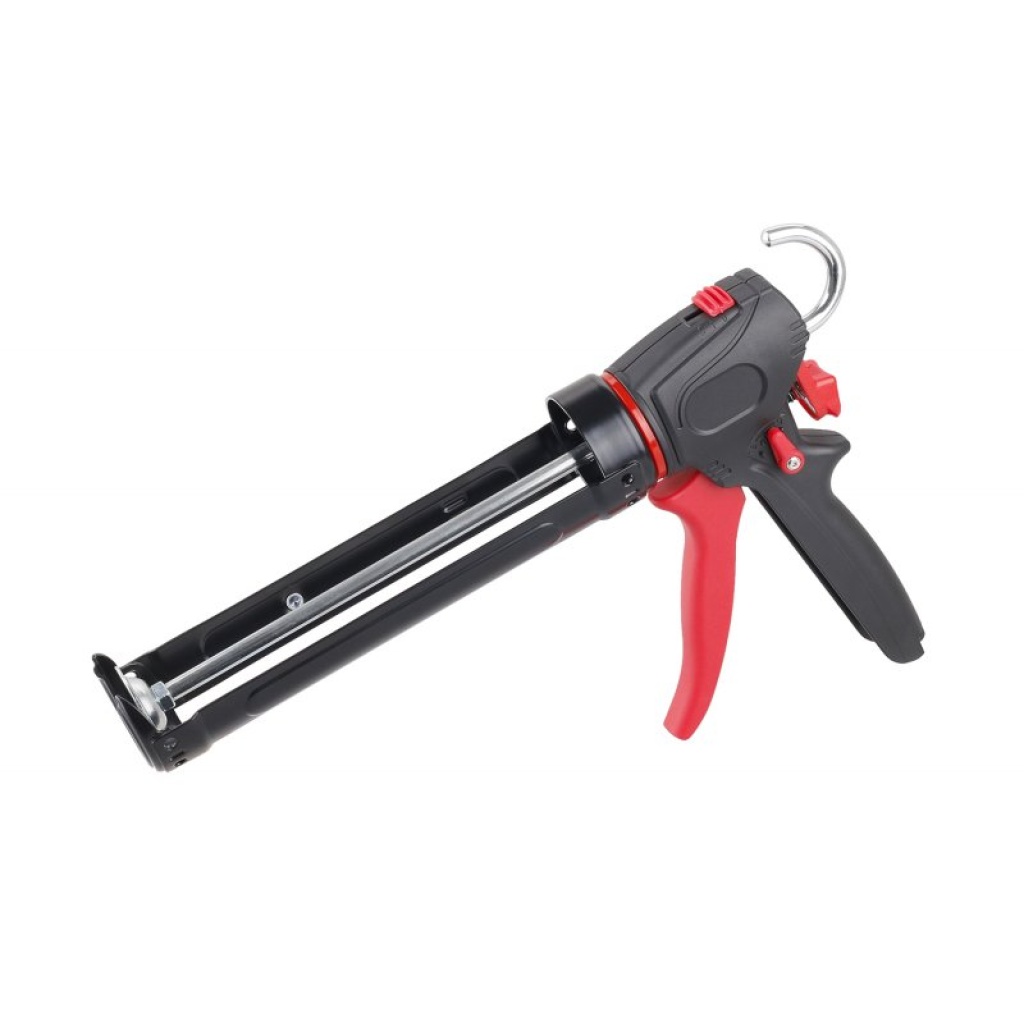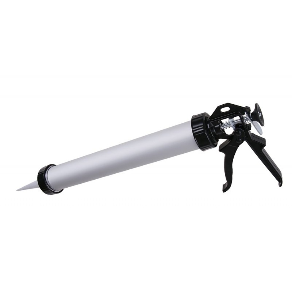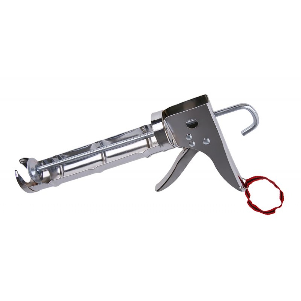 Ekstruderpistol til 310 ml patroner, universel anvendelse til forskellige typer fugemasser og silikoner, højkvalitets glidemekanisme, godt greb og længden på betjeningsgrebet sikrer en god kraftoverførsel ved påføring af fugemasse.