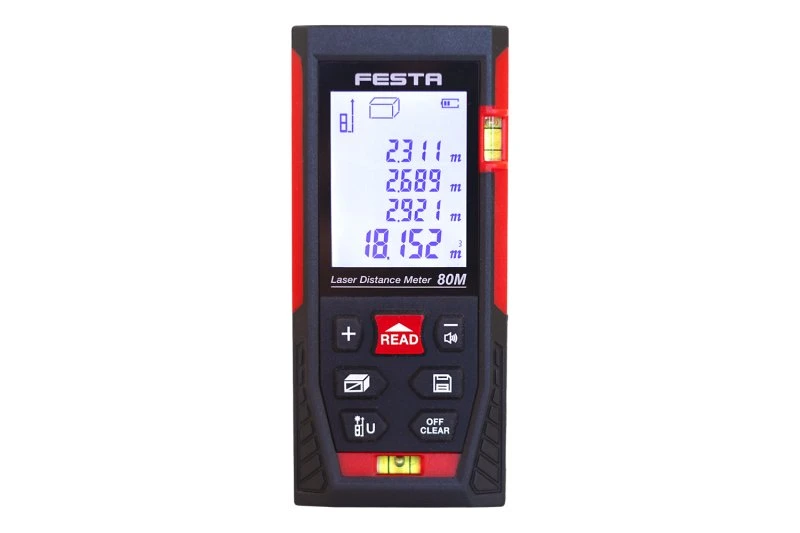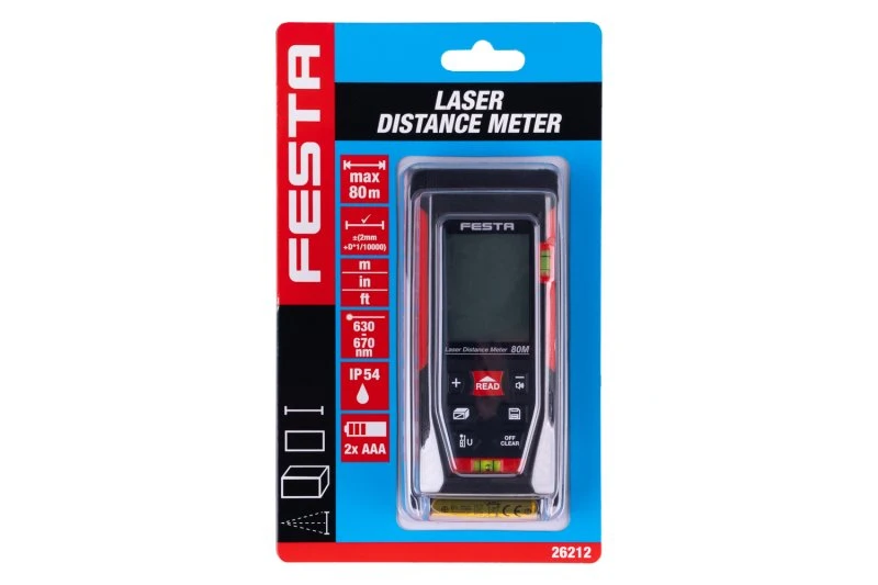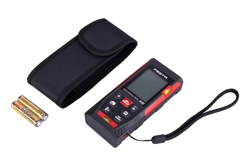 Laser afstandsmåler 80 m fra FESTA giver hurtige og præcise målinger ved bygge- og installationsarbejde.