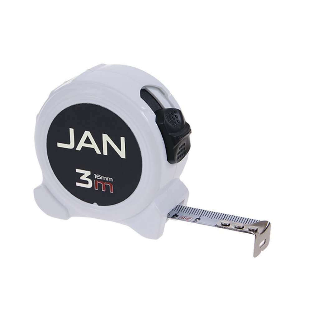 Målebånd med navn, hærdet bånd, målerkasse af ABS-plast, bred, letlæselig skala med store tal, løkke, bælteclips. CE-certifikat – måleren er egnet til kalibrering.