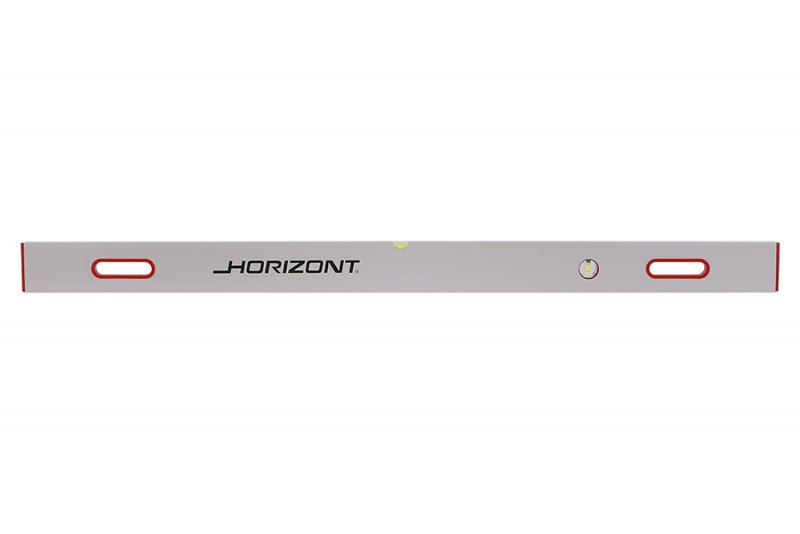 Murerstav i aluminium med håndtag, 2 vaterpas (vandrette, vertukale) til orienteringsmålinger, væsken i vaterpassene er fluorescerende, forstærket profil, ender i plast.