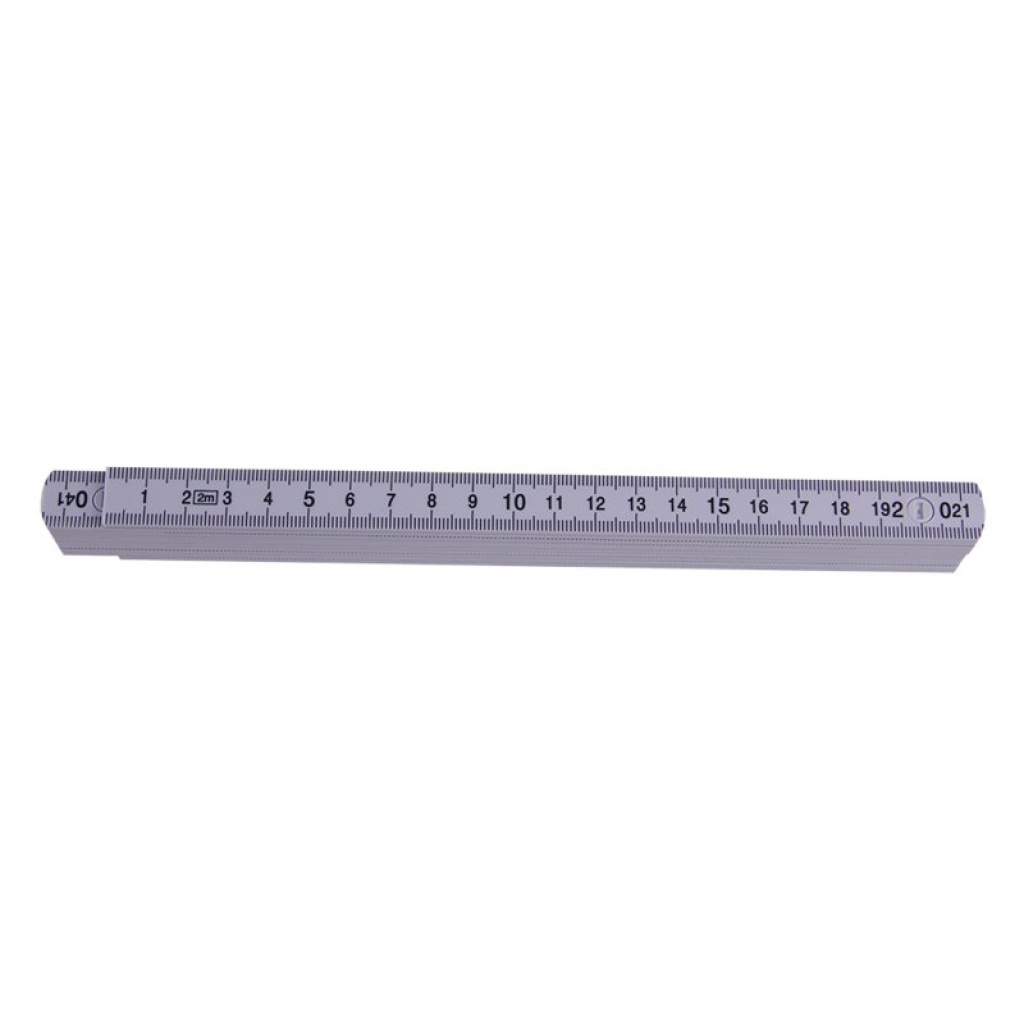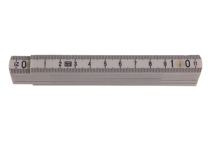 • Foldelineal i plast, hvid farve, dobbeltsidet skala i mm – letlæselig sort skrift, mini-design (kortere stykker) uden låse – lettere layout.