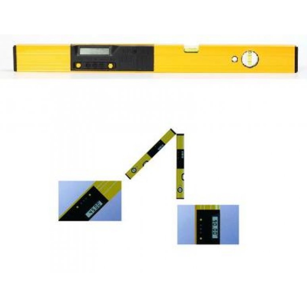 Horizon-hældningsmåler, anodiseret slidstærk overflade, vægtykkelse ALU-profil 1,5 mm, væsken i vaterpasset er UV-stabiliseret og fluorescerende, vaterpasset placeret på en roterende vinkelmåler 0-360 °, mulighed for at låse den målte værdi.