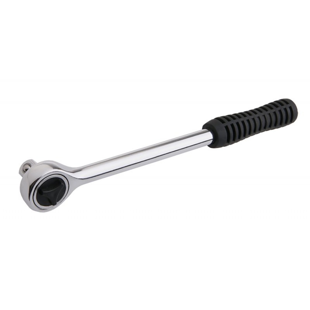 • Metalskralde med 36 tænder og vippegreb. Skridsikkert gummihåndtag. Korrosionsbestandig kromoverflade. Hurtig og nem udskiftning af hoved.