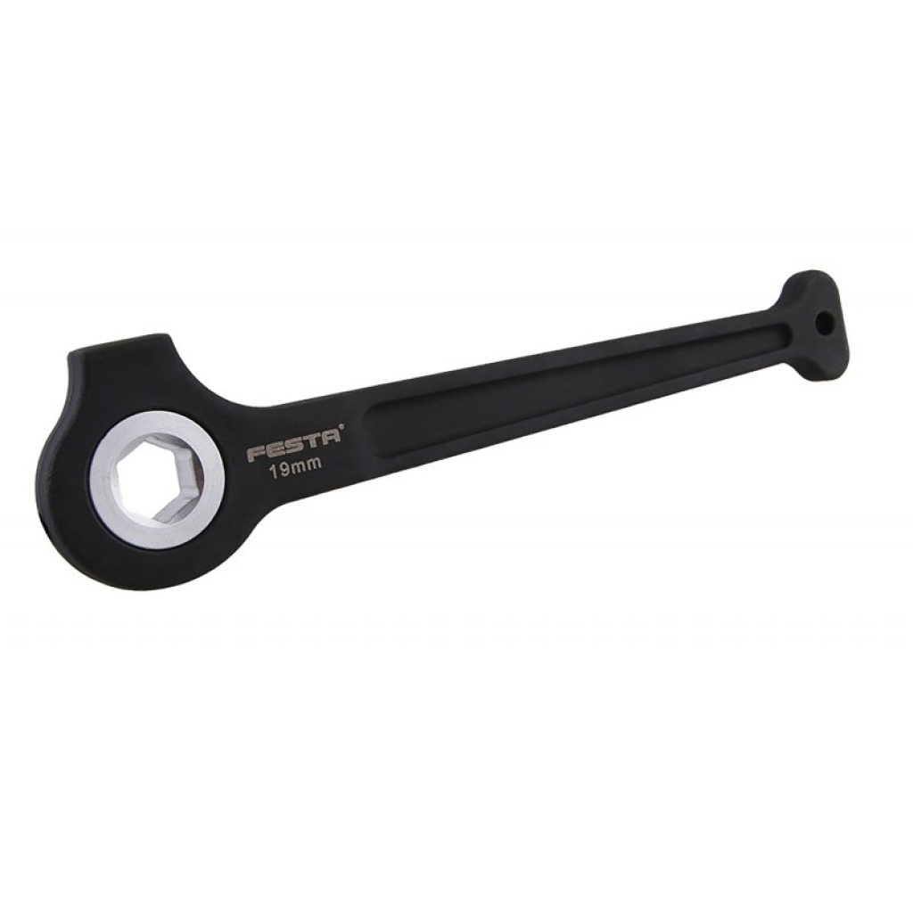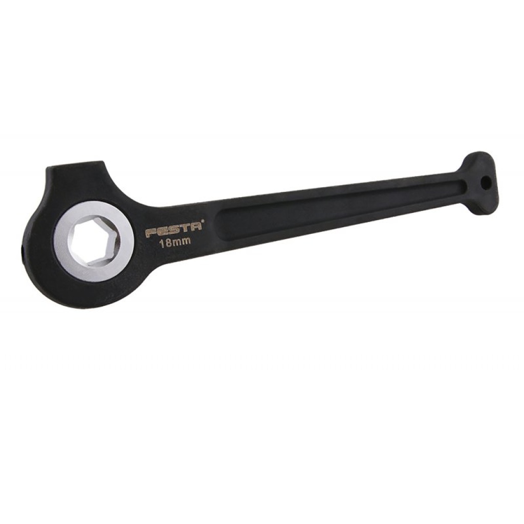 Stilladsskralde FESTA 18 mm er en nøgle-skralde til rørstilladser. Traditionel stilladsskralde med en indvendig skralde, som kun indeholder 6 store tænder. Takket være dette er mekanismen meget holdbar, ligesom hele skralden, som de ofte bruger som hammer. Vægt 0,840 kg.