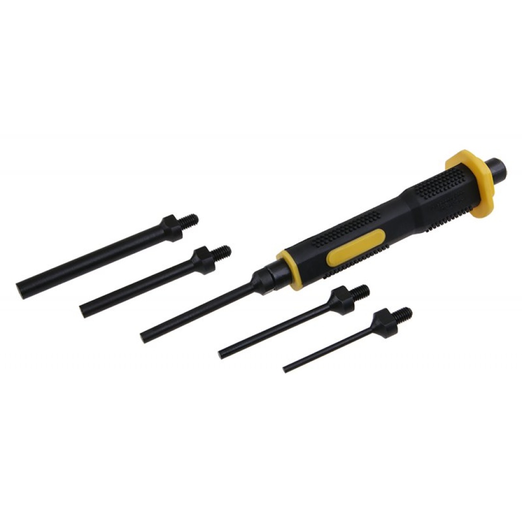 Kvalitetssæt med FESTA-stansejern af krom-vanadium-stål. Sættet består af 6 stk. Sættet indeholder et ergonomisk formet gummihåndtag og 5 udskiftelige stempler. Spidsdiameter 3, 4, 5, 6, 8 mm.