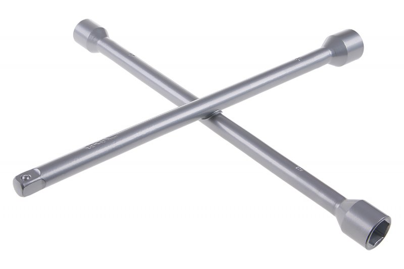 Hjulnøgle, kryds 17-19-21- 1/2 – designet til nem tilspænding og løsning af hjulmøtrikker i dimensionerne 17, 19, 21. Enhver 1/2-forlænger (møtrik) kan bruges til 1/2-endestykket.