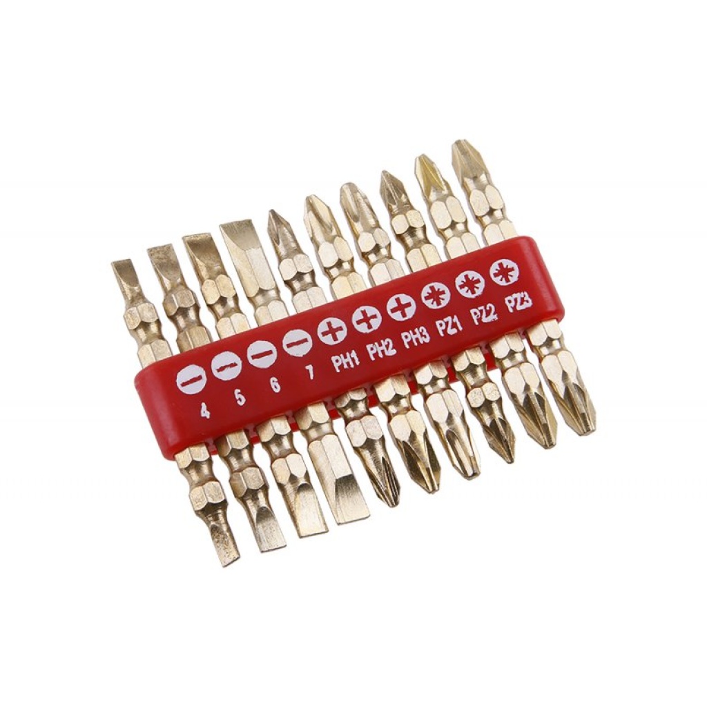 Bits i en rund plastboks med et hul til at skubbe den ønskede bit ud. Sættet indeholder 7 stykker med magnetiske spidser (-3,5,7 + PH1, PH2PH3). Til hobbybrug.