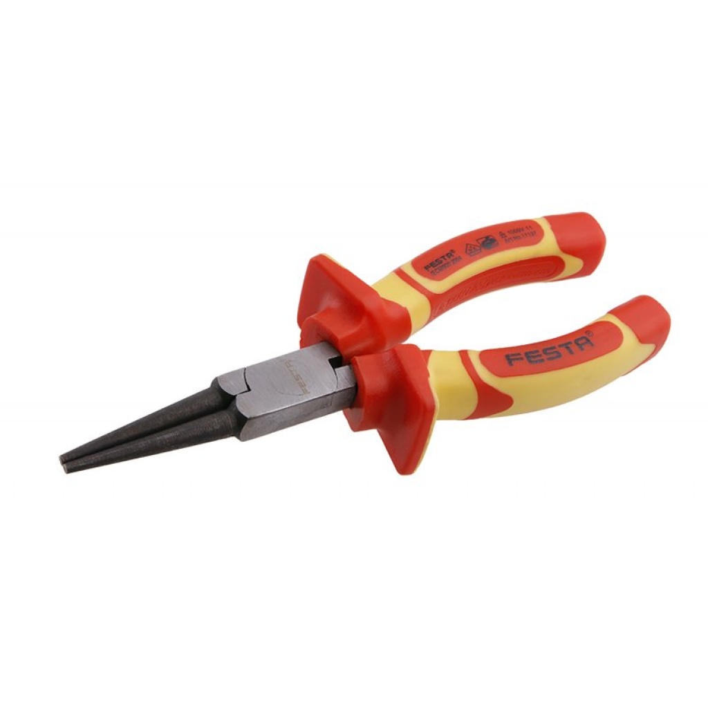Rundnæsetang VDE 160mm FESTA er elektrisk certificeret VDE 1000 V, IEC / EN 60900-2004, kombinationen af polypropylen og gummi på ergonomisk formede hænder garanterer fremragende skridsikre egenskaber og god modstandsdygtighed over for smøremidler og kemikalier. Gribekæber af særligt slidstærkt, højtydende krom-vanadium-stål. Vægt 0,233 kg.