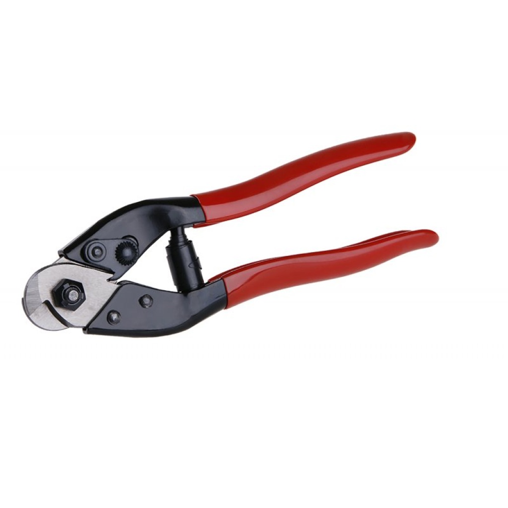 Skæretang til stålwirer 200 mm, til materialer: kabler op til 6 mm, snore op til 5 mm, kan også bruges til at skære ledninger, kabler, kabler kal, hærdede kæber, specielt formede kæber til skæring uden efterfølgende fletning, med åbningsfjeder og låselås, ergonomiske belagte håndtag af plast, blister.