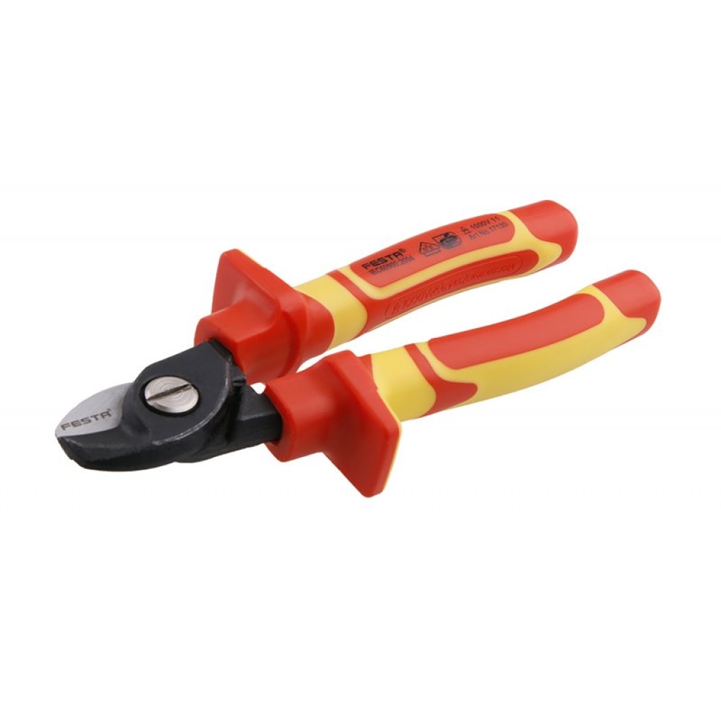 VDE-kabelskilletang 160 mm FESTA er elektrisk certificeret VDE 1000 V, IEC / EN 60900-2004, kombinationen af polypropylen og gummi på ergonomisk formede håndtag garanterer fremragende skridsikre egenskaber og god modstandsdygtighed over for smøremidler og kemikalier. Gribekæber af særligt slidstærkt, højtydende krom-vanadium-stål. Vægt 0,350 kg.