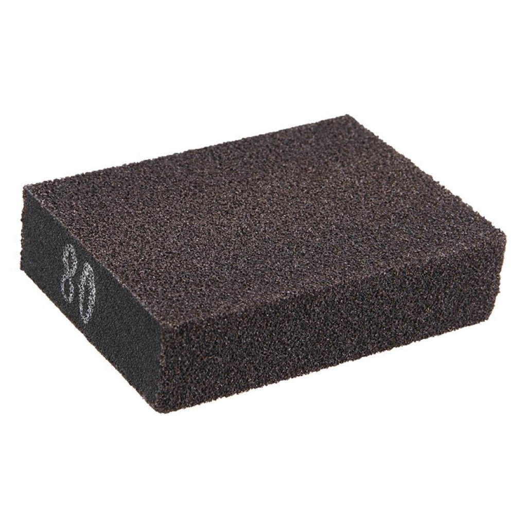 Slibesvampeblok, underlag: højelastisk svamp, kornstørrelse: 80, korntype: siliciumkarbid, bindemiddel: harpiks, anvendelse: mellemslibning af lakker, slibning af maling, spartelmasse og gamle lakker, slibning af træ, metal, plast, slibning af belægninger i riller og på overfladen , slibning af gipsplader, …, mål: angivet i produktnavnet, emballage: papirhylster med eurohul.