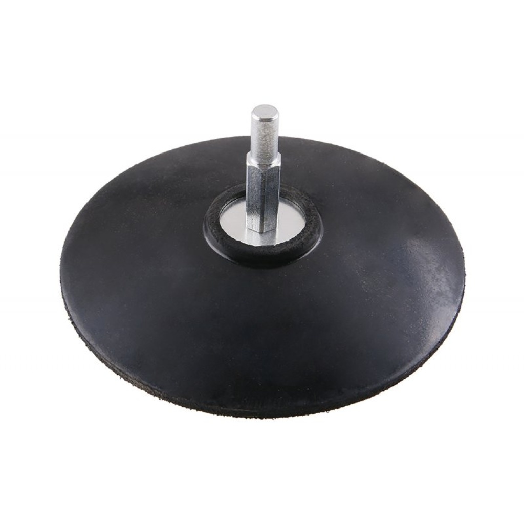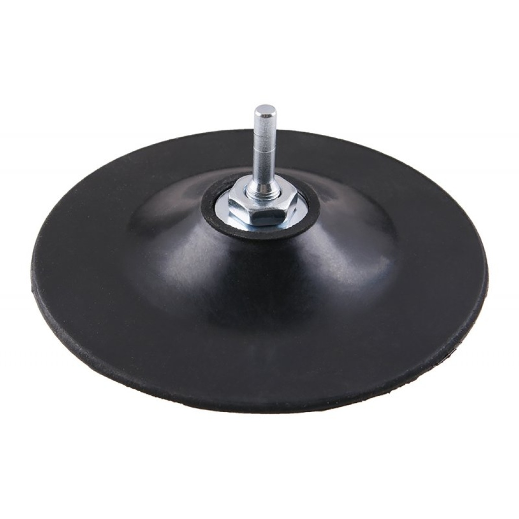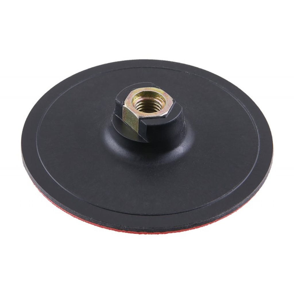 Backing pad, fleksibel støtteplade, blødt elastisk EVA-skum, meget god tilpasning til underlaget, gevind: M14, skaft – reduktion M 14 / 8 mm, anvendelse: til fastgørelse af slibeemner med en diameter på 150 mm, fastgørelsestype: Velcro, emballage: blister med euroåbning.