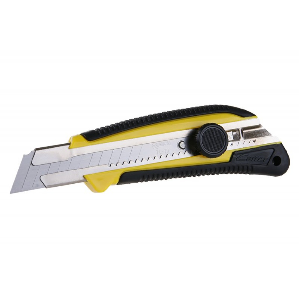 • Afbryderkniv FESTA 25 mm, kvalitetsmaterialer, ergonomisk form med skridsikker behandling, metalstang, holdbar skruelås, blister.