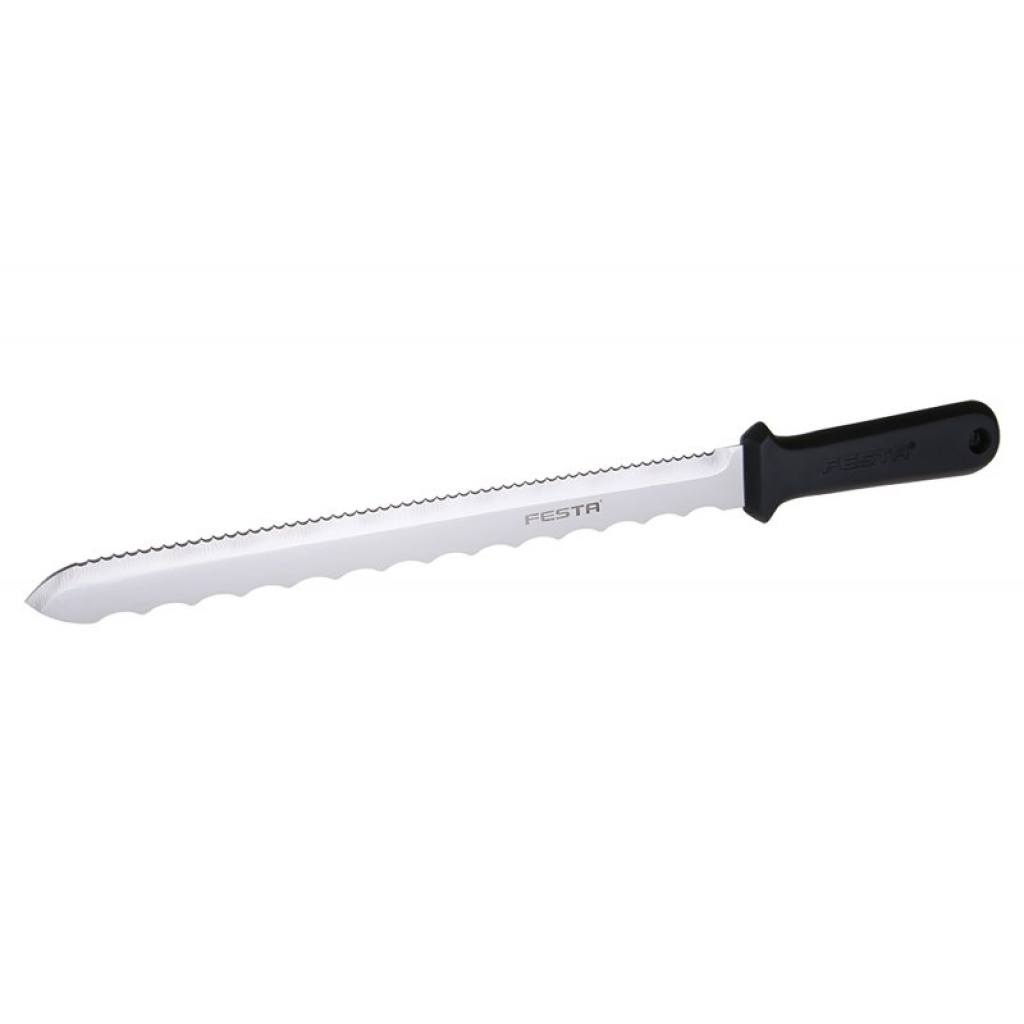 Mineraluldskniv, dobbelt bladruhed til forskellige typer og tætheder af mineraluld, ergonomisk håndtag til universelt greb, bladlængde 330 mm, plasthængsel.